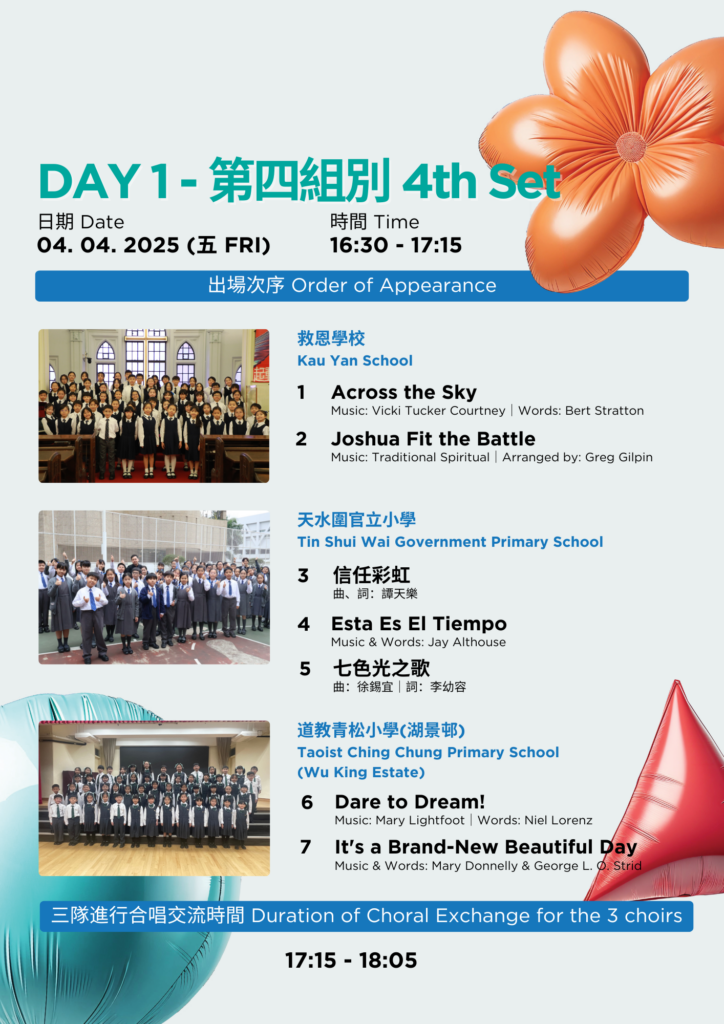 HKICF2025 proudly presents a brand-new initiative! An outdoor choral carnival featuring 1,500 students will be held on April 4-5, 2025, at the AIA Vitality Park, Hong Kong Observation Wheel, Central Harbourfront. Over two exciting days, members 30 choirs across Hong Kong will deliver a fresh and captivating choral music experience to the public. We extend our heartfelt thanks to the Hong Kong Observation Wheel as the venue sponsor for this new programme!