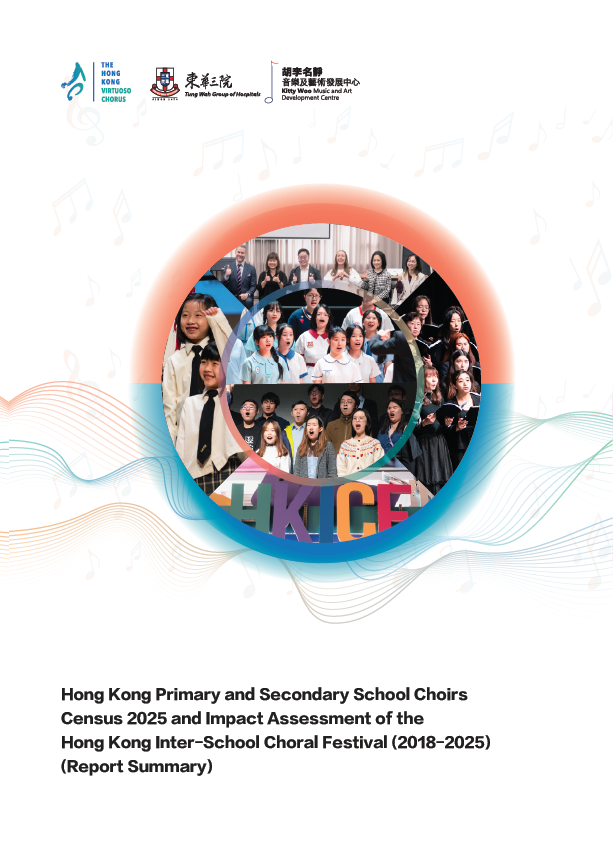 The Hong Kong Primary and Secondary School Choirs Census 2025 was conducted from January to May 2025, with 316 schools participating—representing about one-third of Hong Kong’s primary and secondary schools. The study provides a clear picture of the current state of local school choirs while assessing the role of the Hong Kong Inter-School Choral Festival in advancing local choral development.